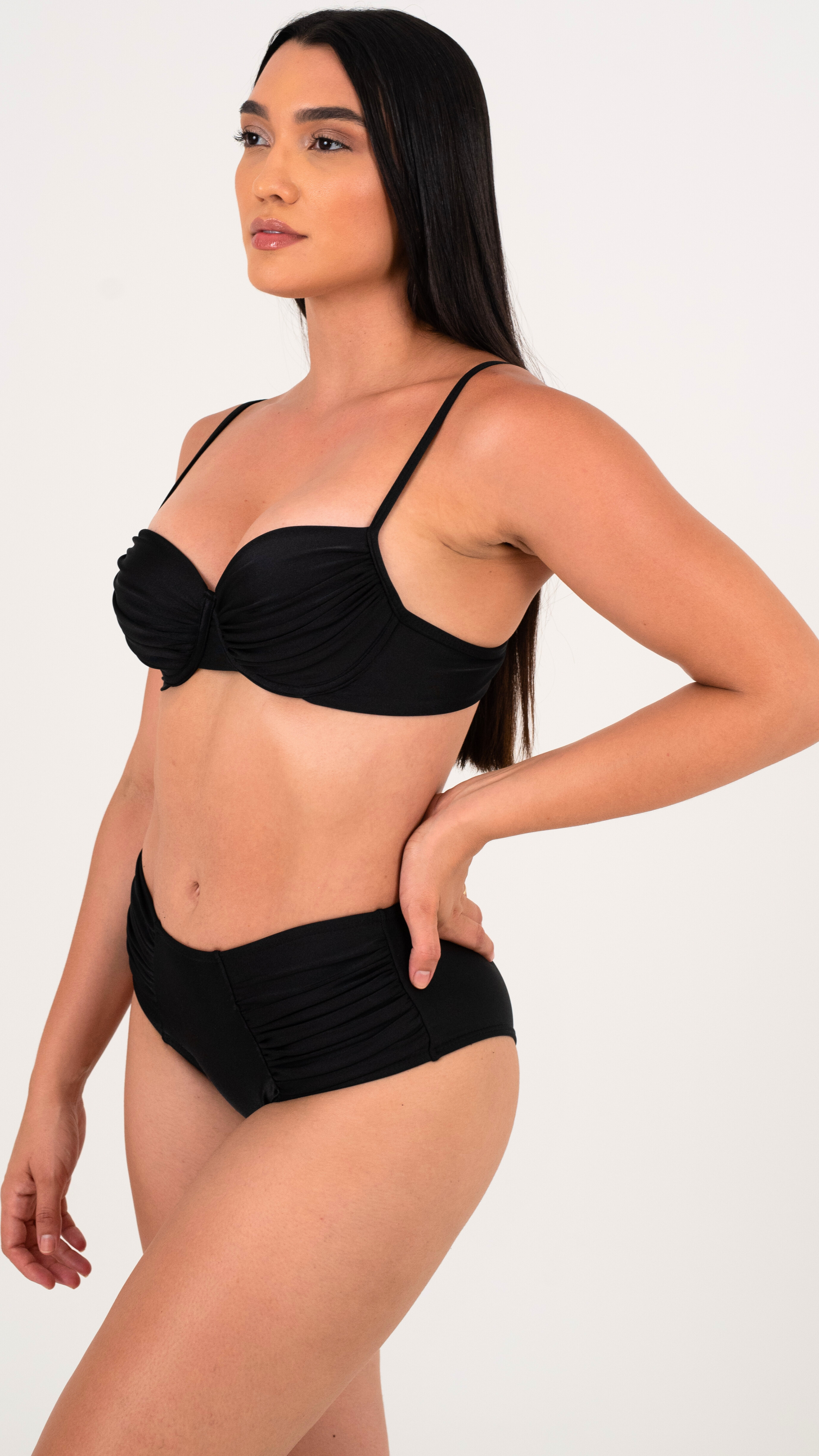 A peça perfeita para quem busca conforto com toque de modernidade. A modelagem sunguete proporciona cobertura moderada e efeito alongador nas pernas. O detalhe em drapeado lateral adiciona charme e sofisticação, valorizando a cintura e criando um caimento diferenciado. Confeccionada em tecido de alta qualidade, oferece excelente ajuste ao corpo e toque macio. Ideal para compor looks elegantes e atemporais na praia ou piscina.