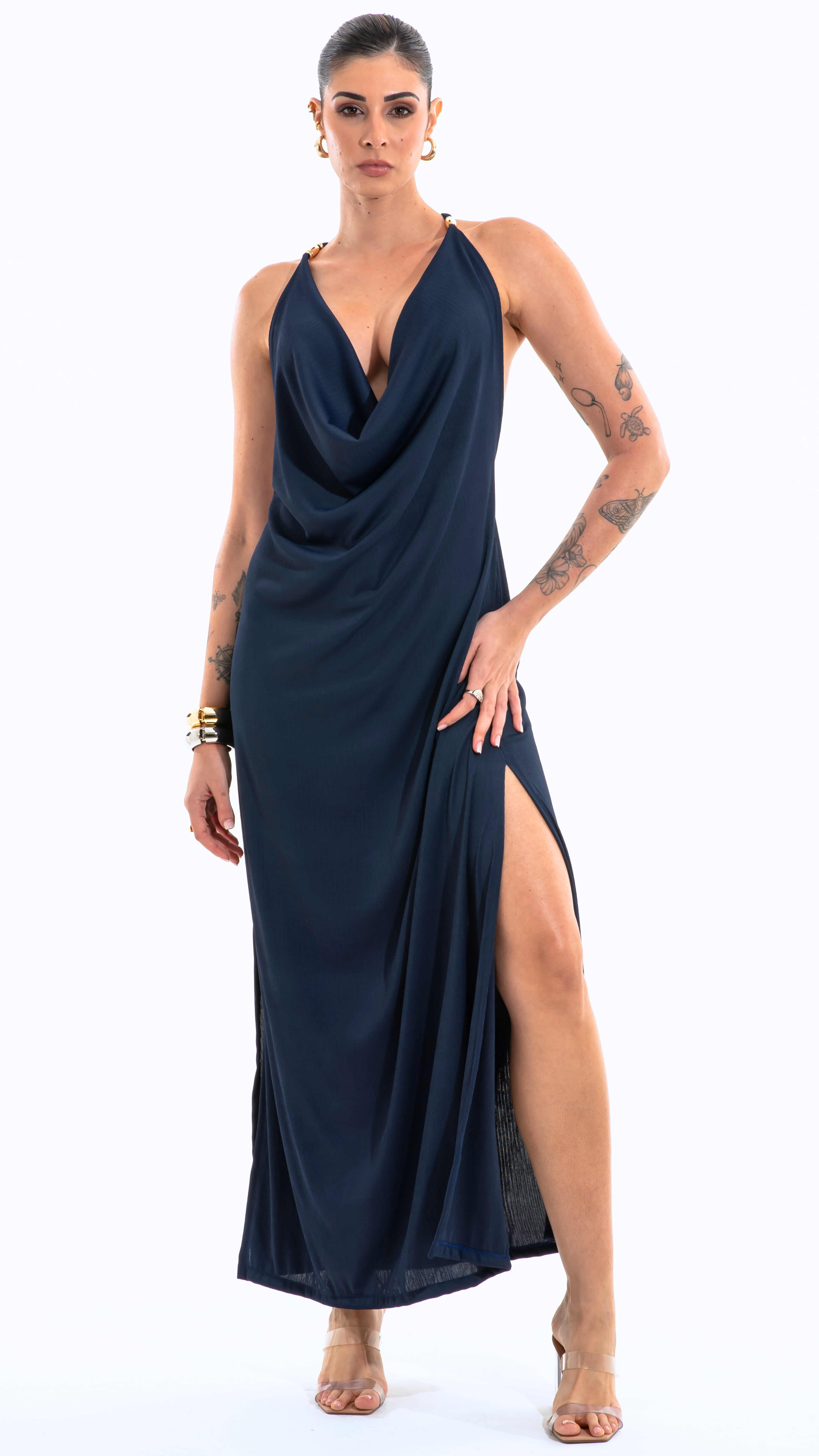 SAÍDA Decote Drapê Trança S26 Rib Twist Marinho
