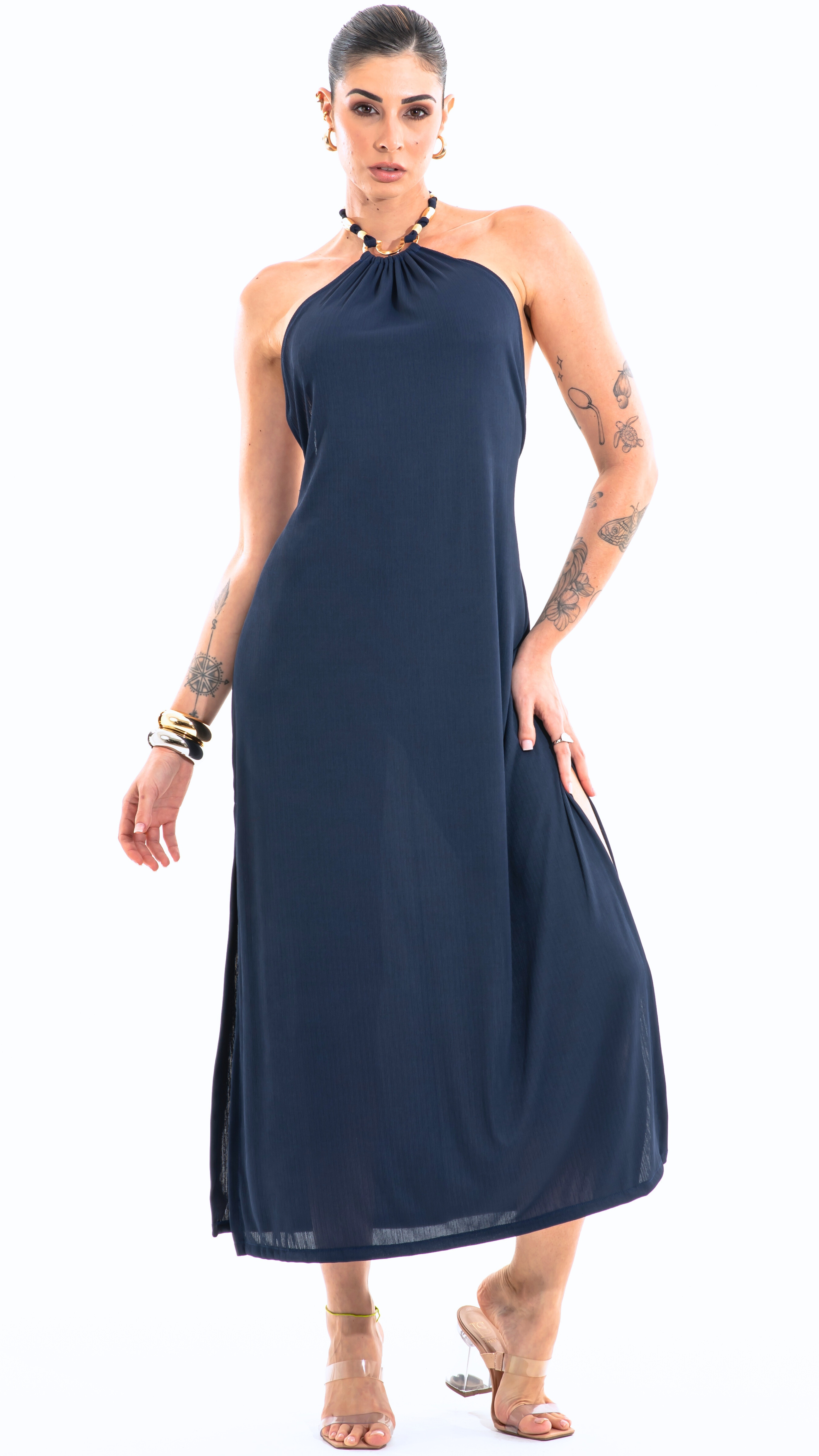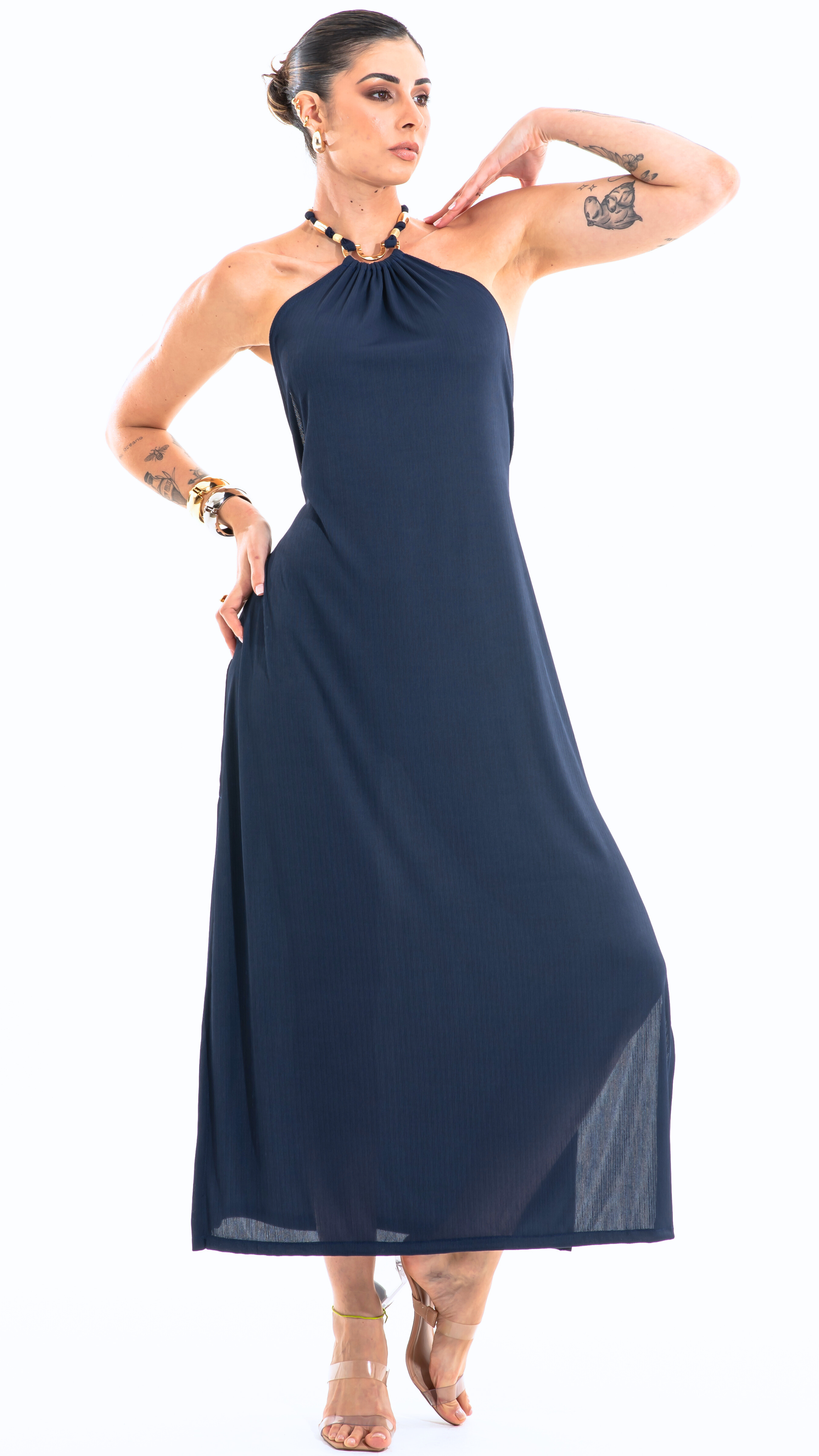 SAÍDA Longo Laço Metal S26 Rib Twist Marinho