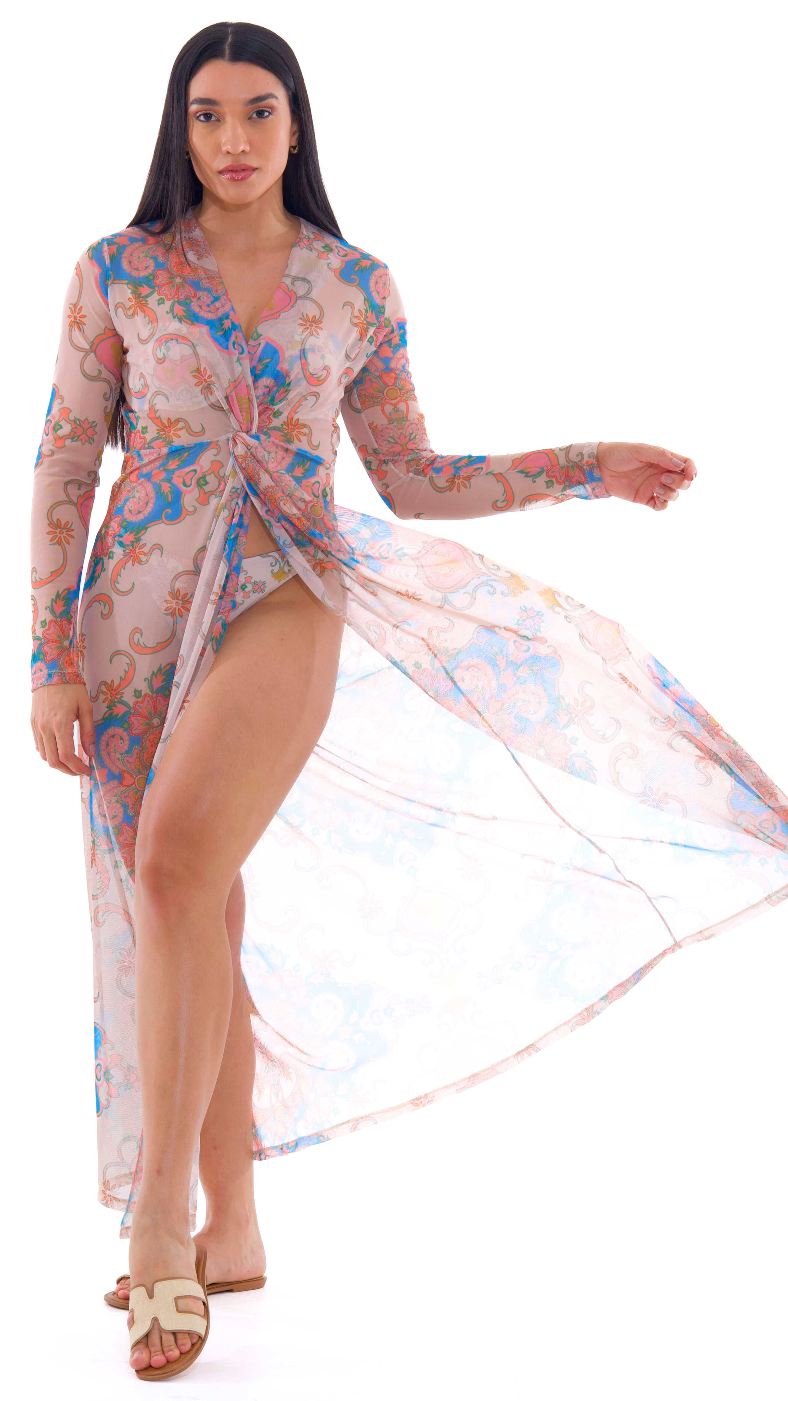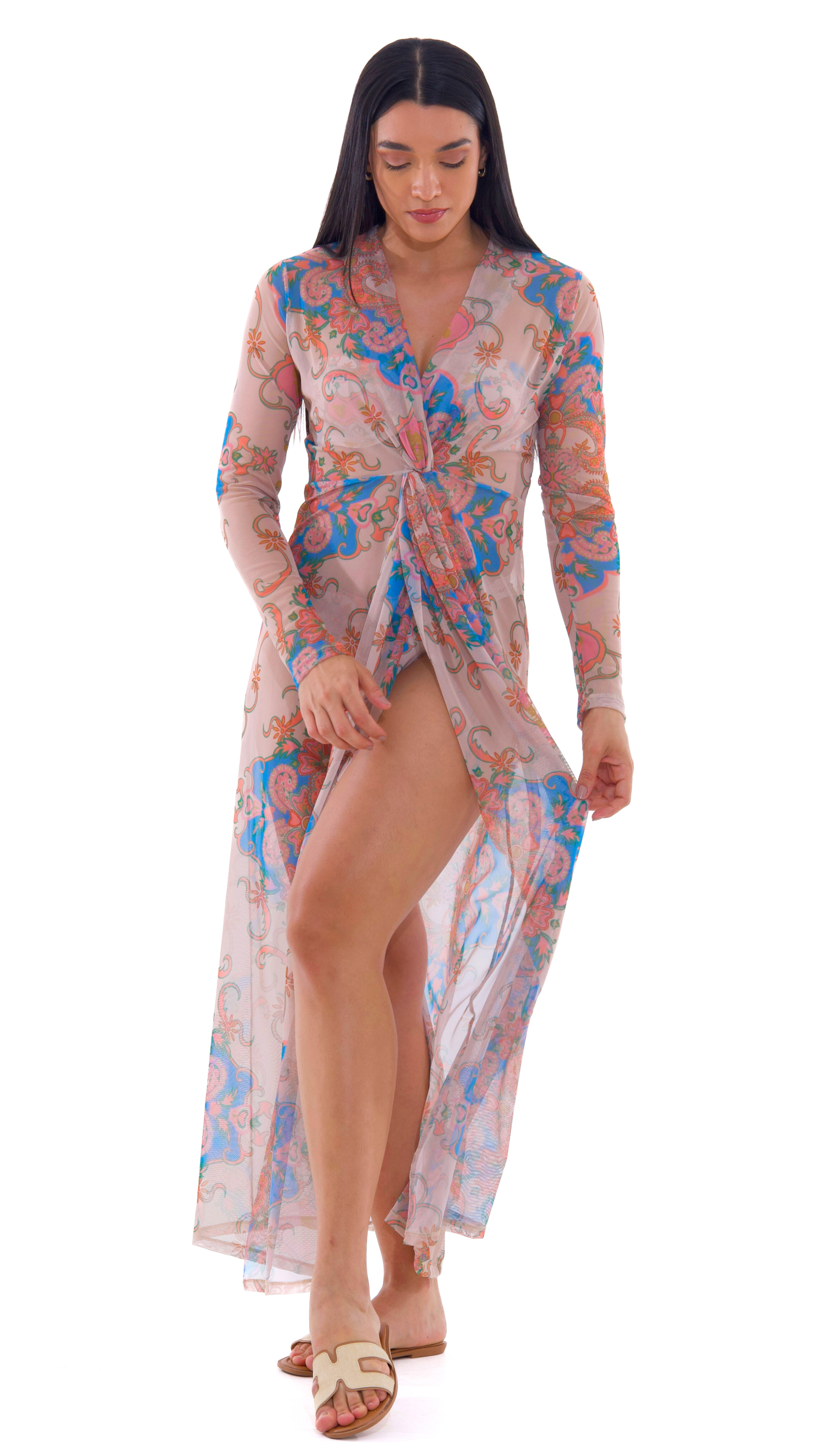 SAÍDA Longo Mga Torcido Tule S26 Aurora