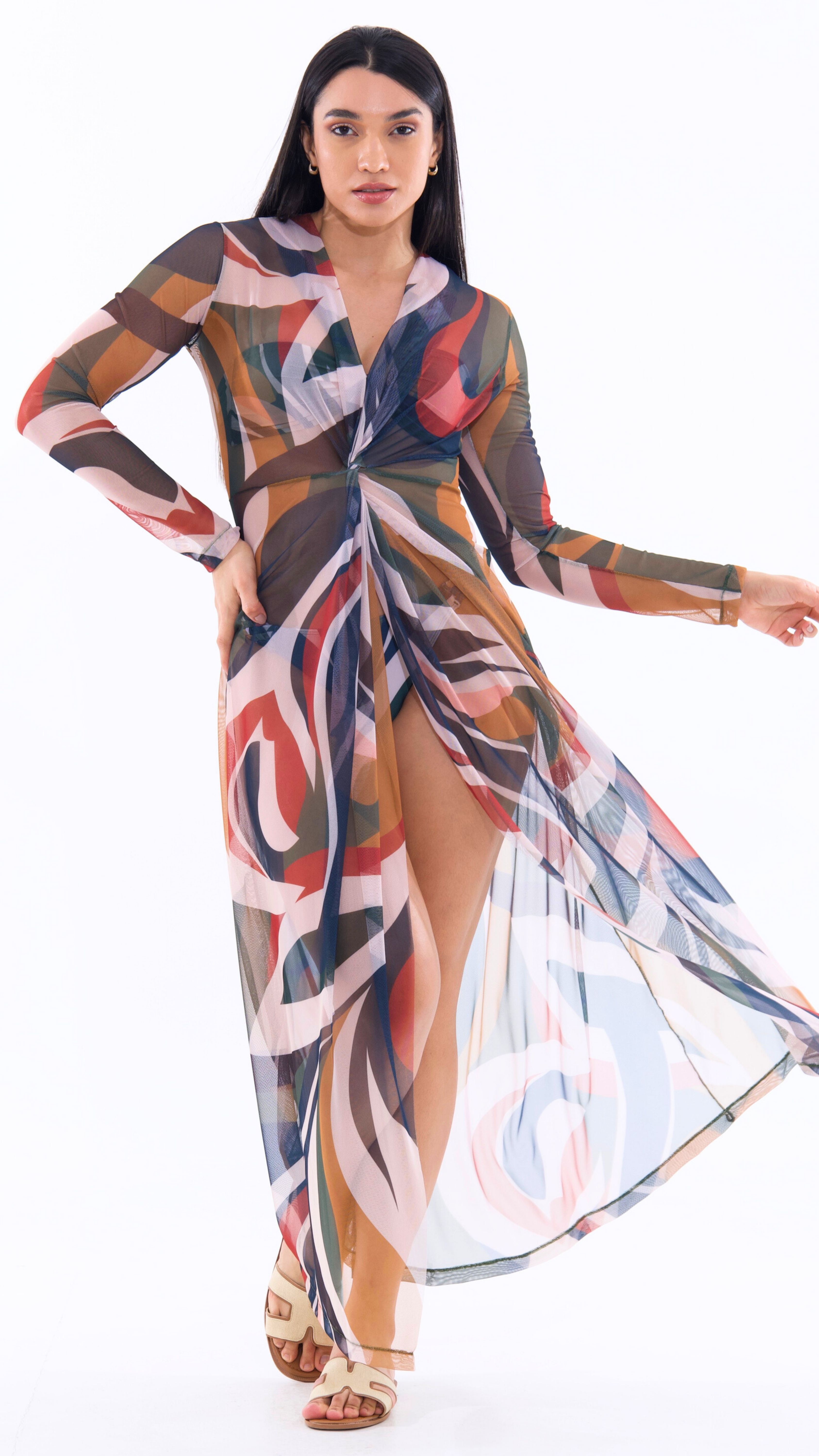 SAÍDA Longo Mga Torcido S26 Tule Miragem