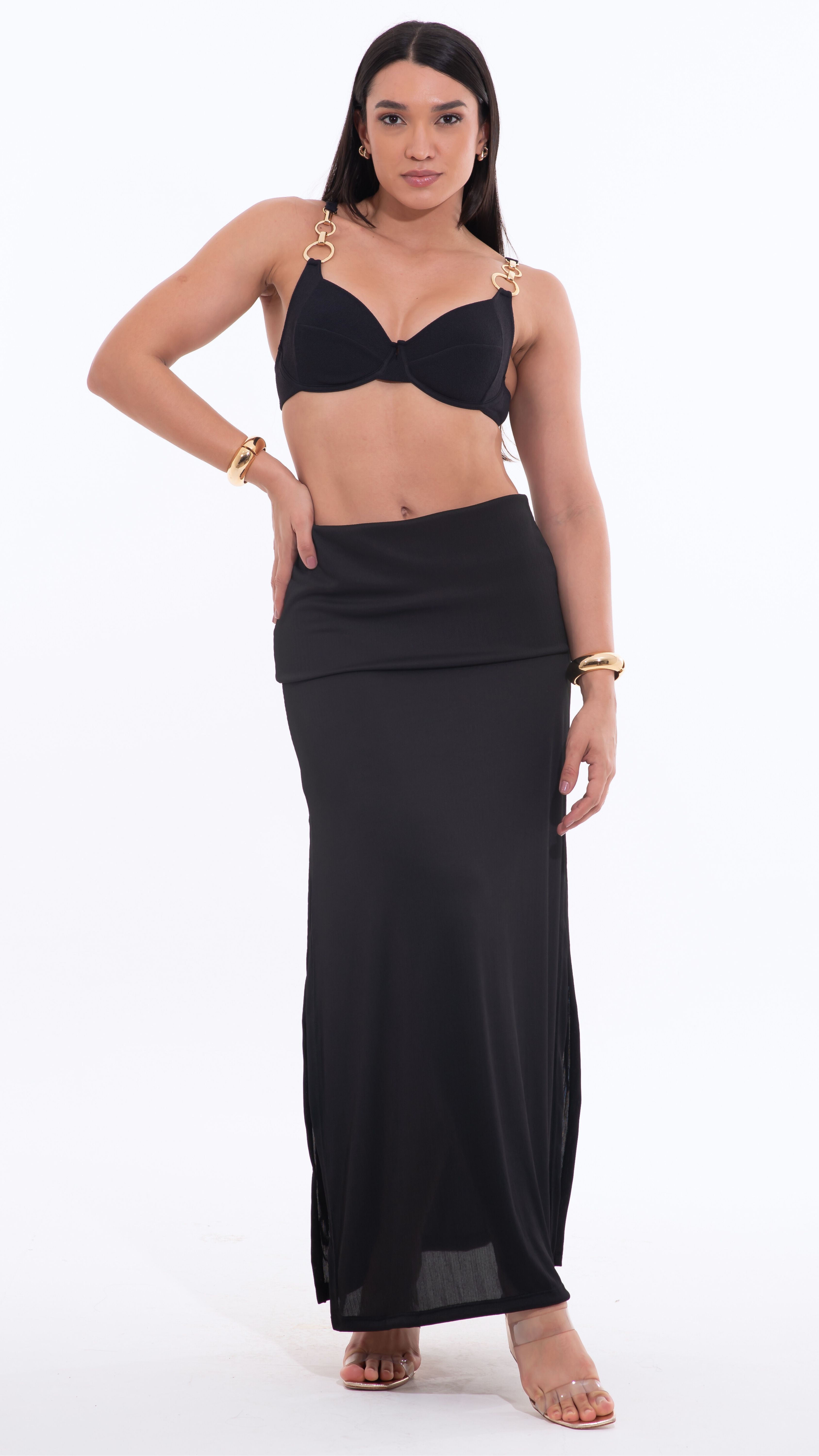 SAÍDA Saia Castanheiras S26 Rib Twist Preto