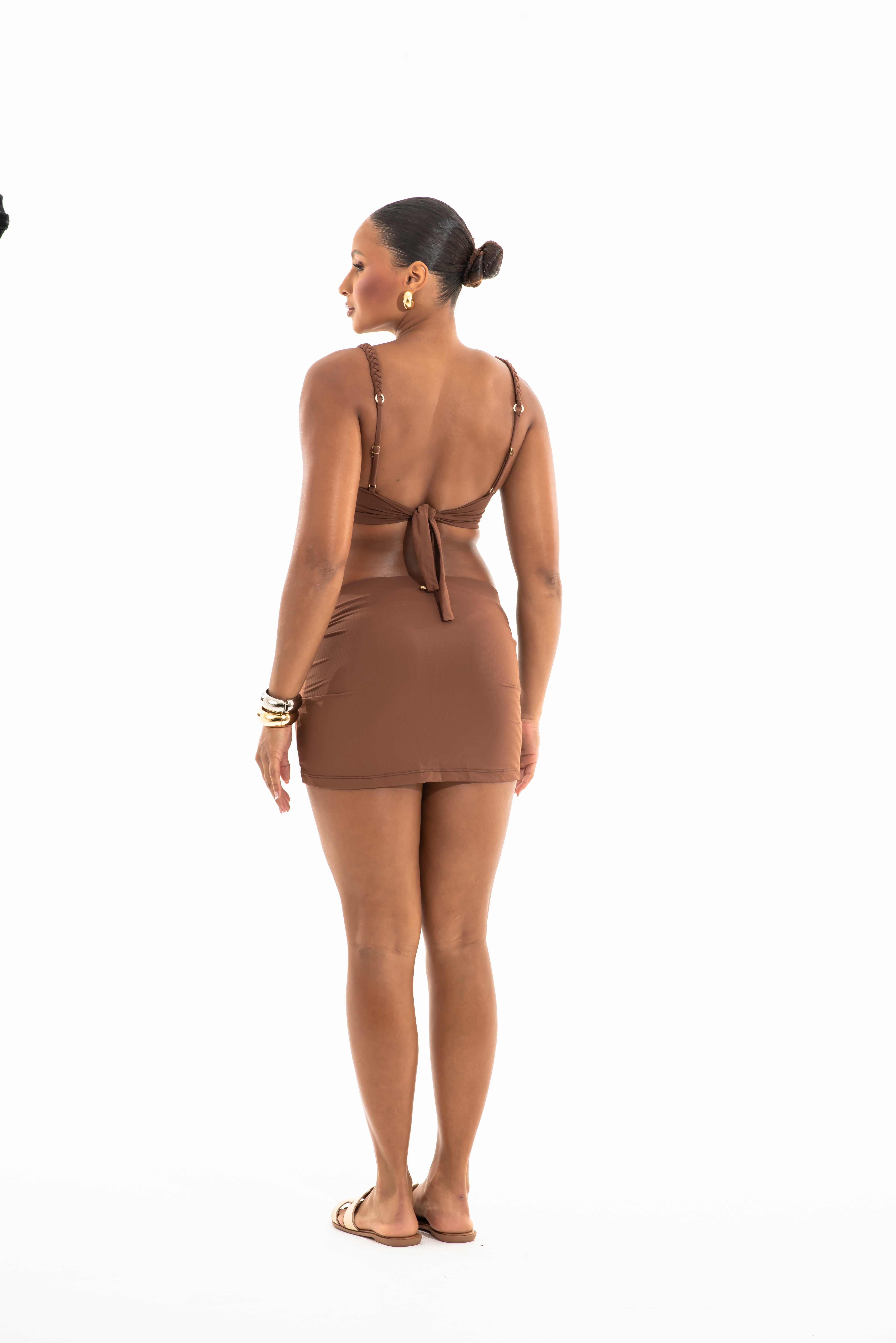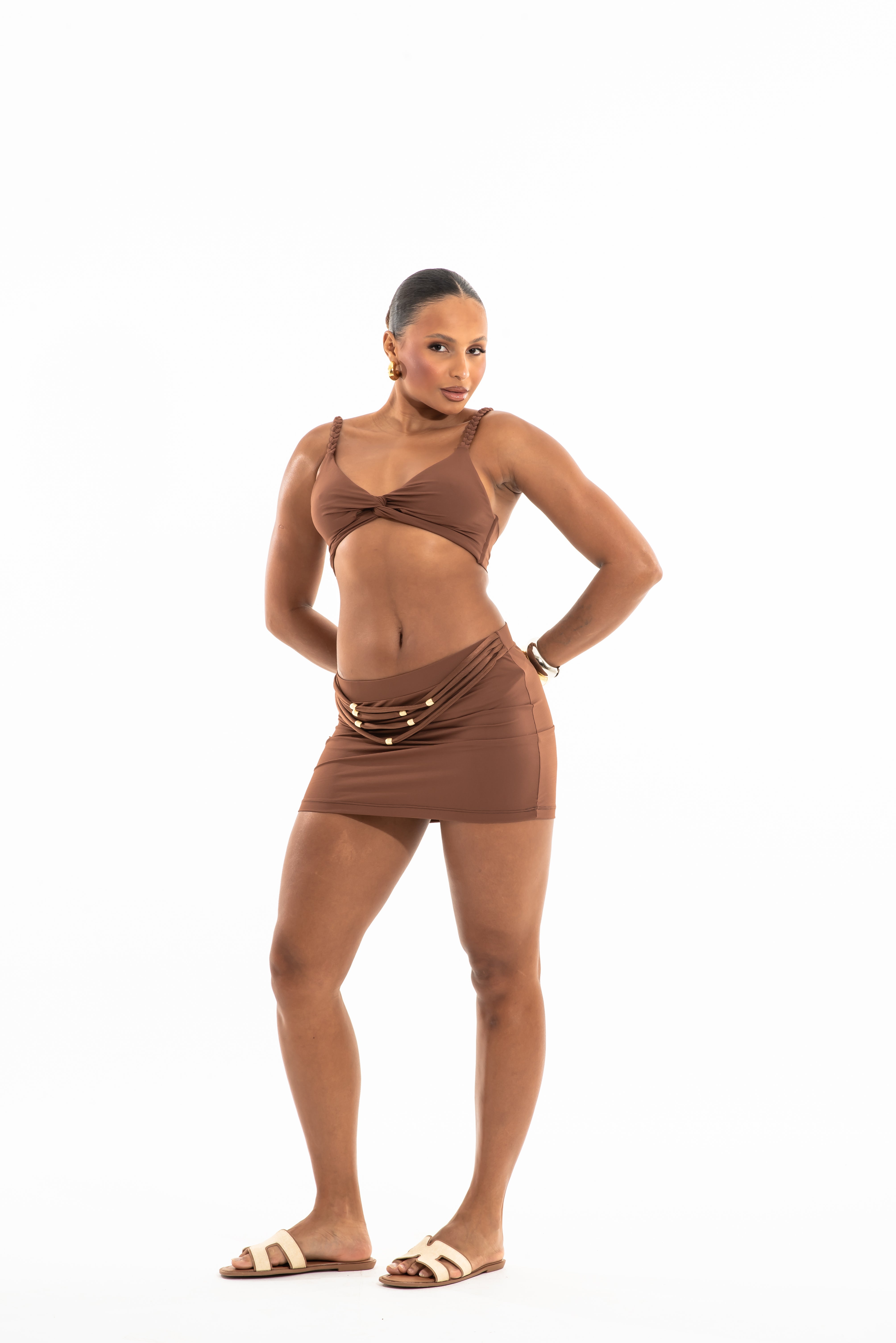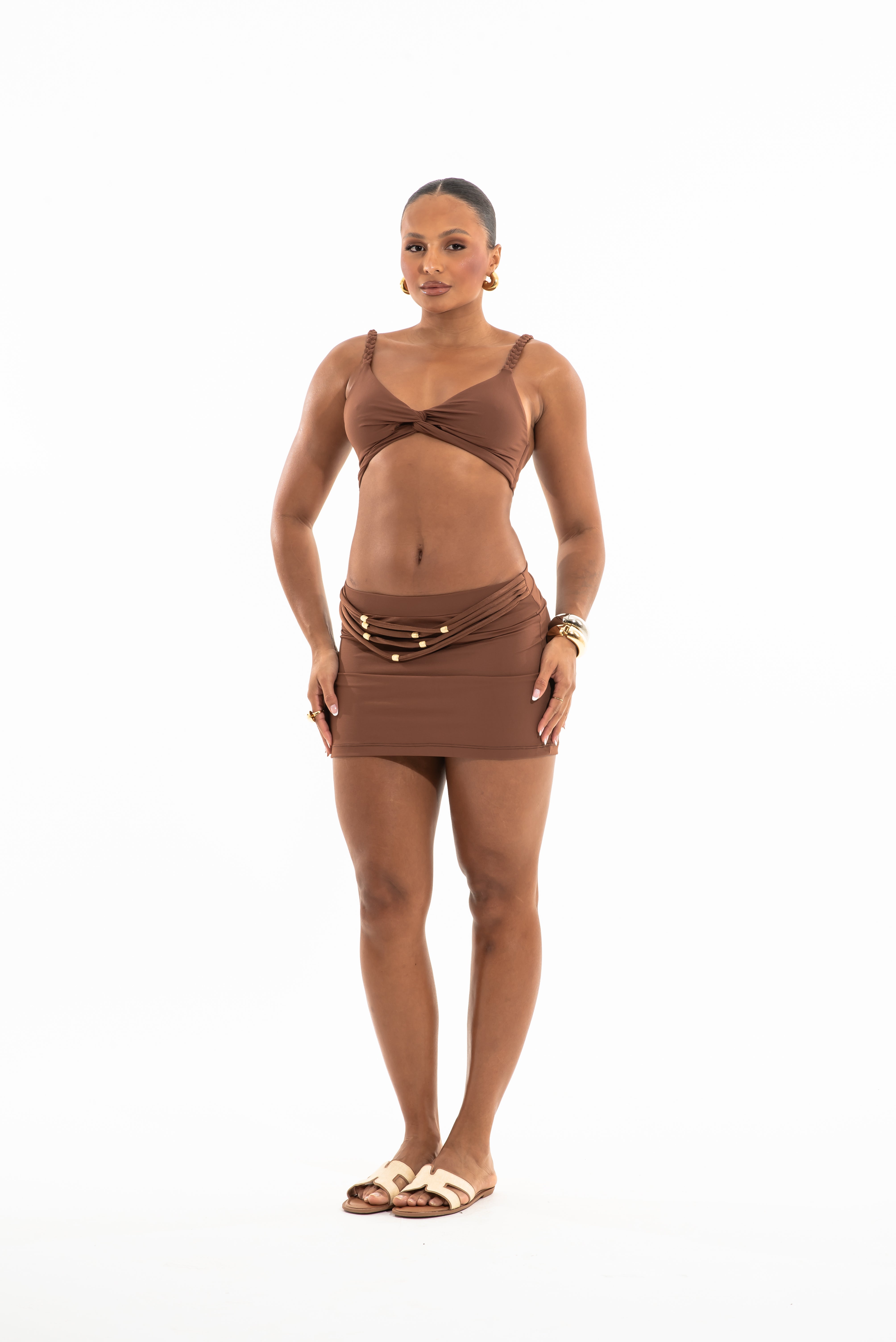SAÍDA Saia Maia S26 Grafiatto Marrom Café
