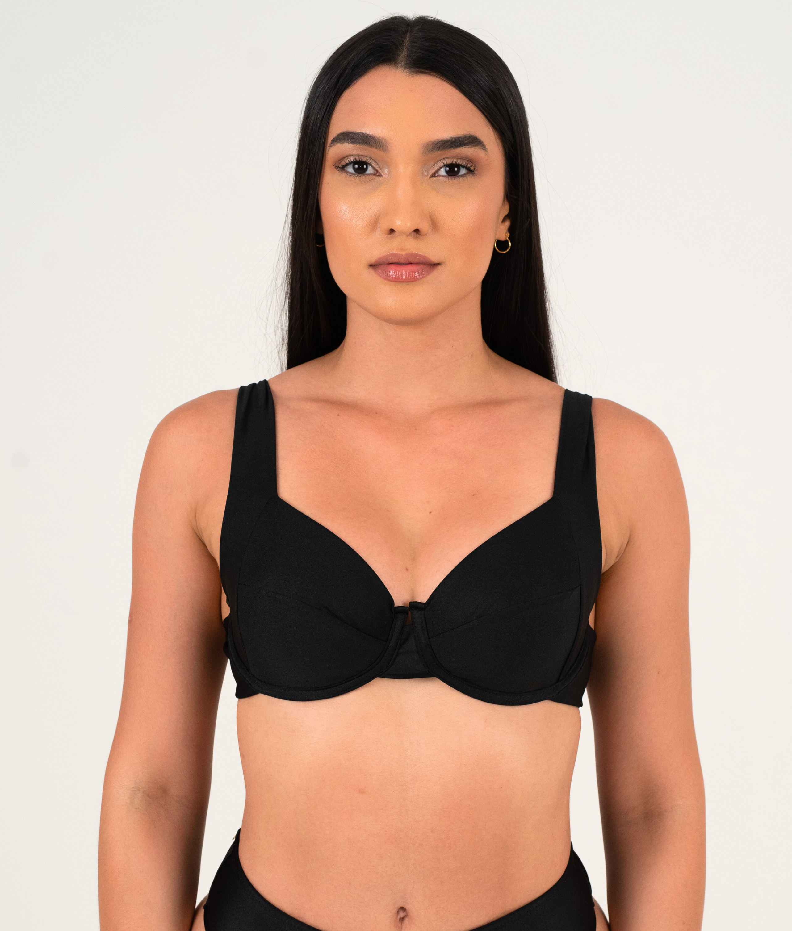 Com design estruturado, este top meia taça oferece sustentação e valoriza o busto com modelagem impecável. As alças largas proporcionam conforto e melhor distribuição do peso, enquanto o aro interno garante firmeza e um efeito elegante no decote. Uma peça pensada para unir estilo e funcionalidade, perfeita para diferentes biotipos.