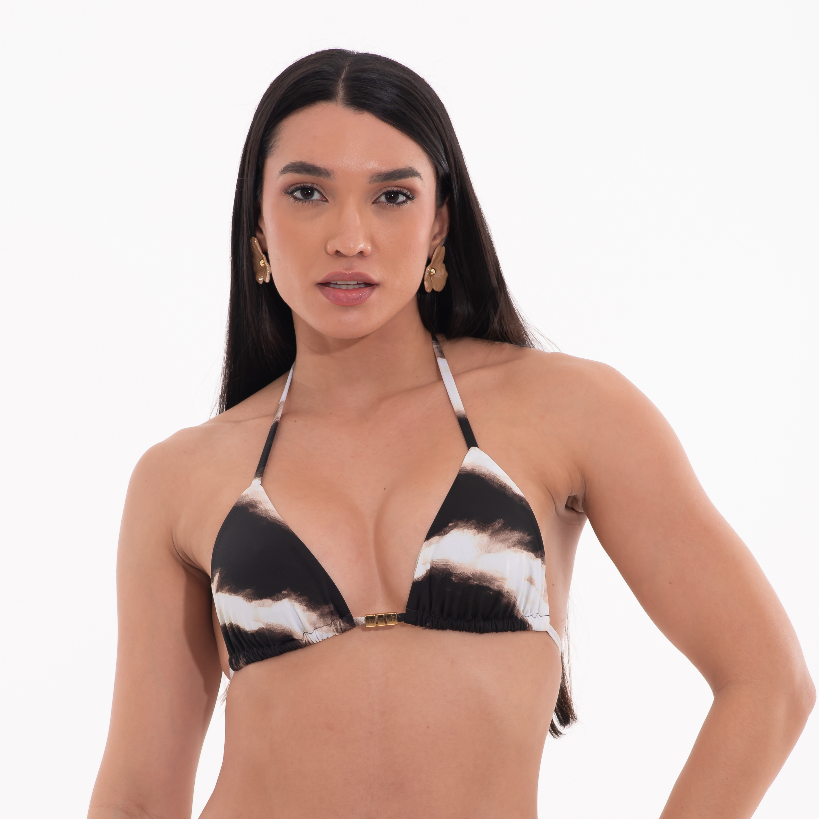 O clássico cortininha repaginado com toque de sofisticação. Este modelo possui bojo removível, alças ajustáveis para amarração no pescoço e nas costas, garantindo ajuste perfeito ao corpo. O destaque fica por conta do detalhe central em metal banhado a ouro, que não esquenta, não descasca e oferece conforto total ao usar. Ideal para quem busca um visual elegante sem abrir mão do conforto.