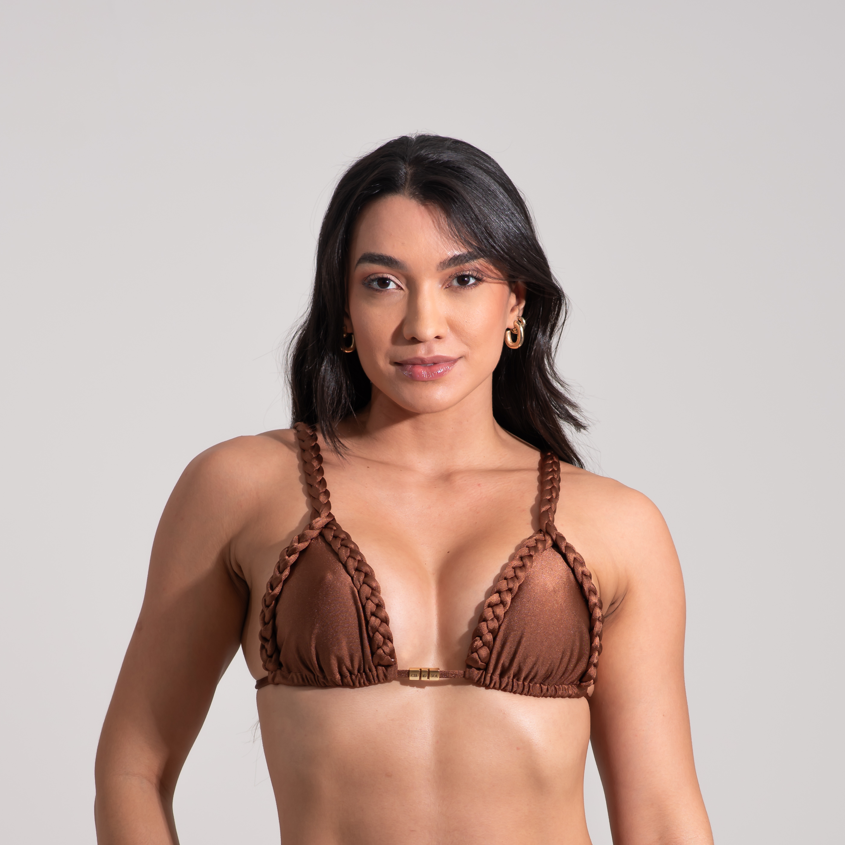 O clássico cortininha ganha um charme especial com a trança. Com bojo removível e alças ajustáveis para amarração no pescoço e costas, ele garante um ajuste perfeito e valorização do busto. O toque final fica por conta dos metais banhados a ouro, que não aquecem no sol nem descascam, proporcionando elegância e conforto em todos os momentos.