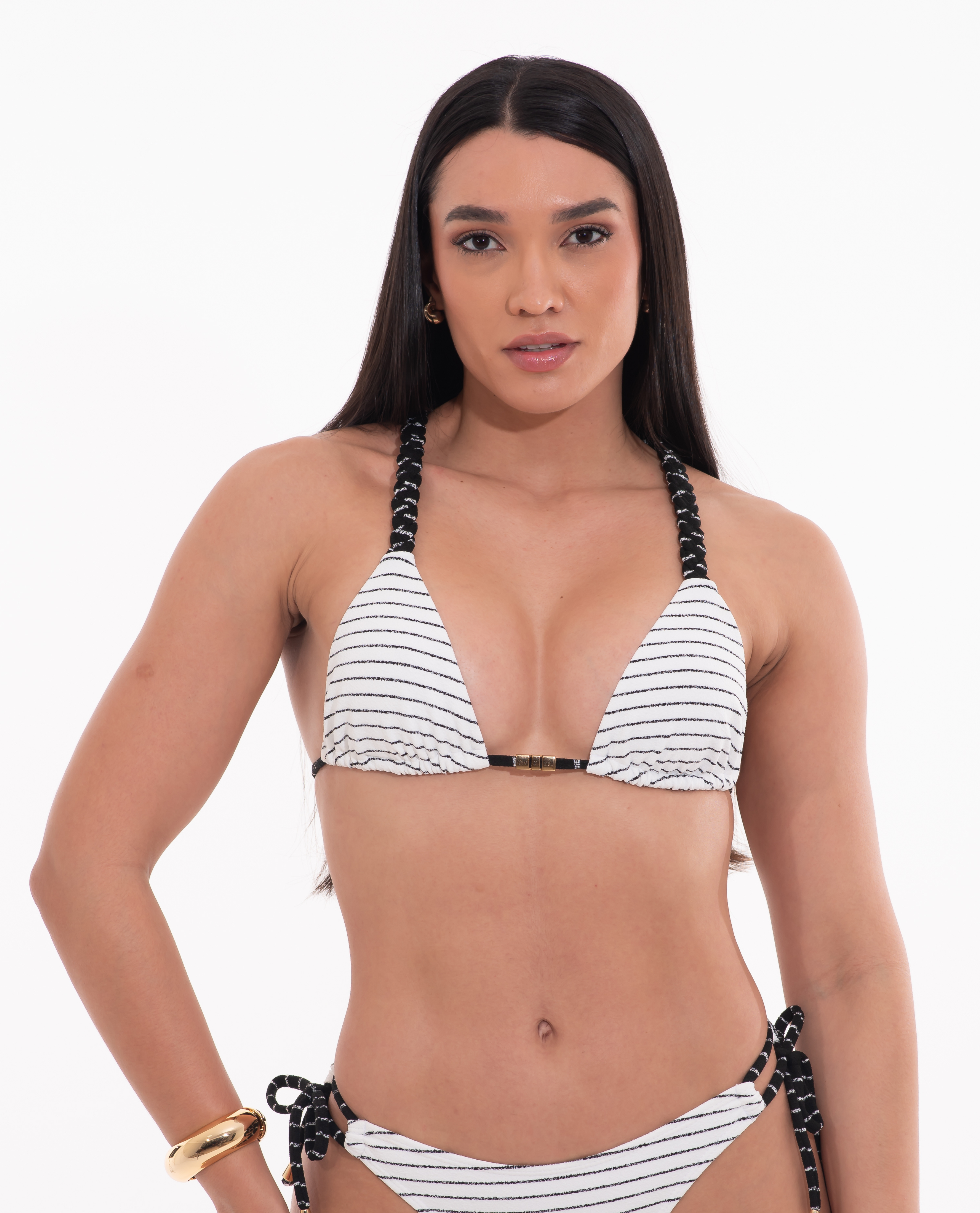 TOP Cortininha trança metal S26 Crunch Listrado Branco